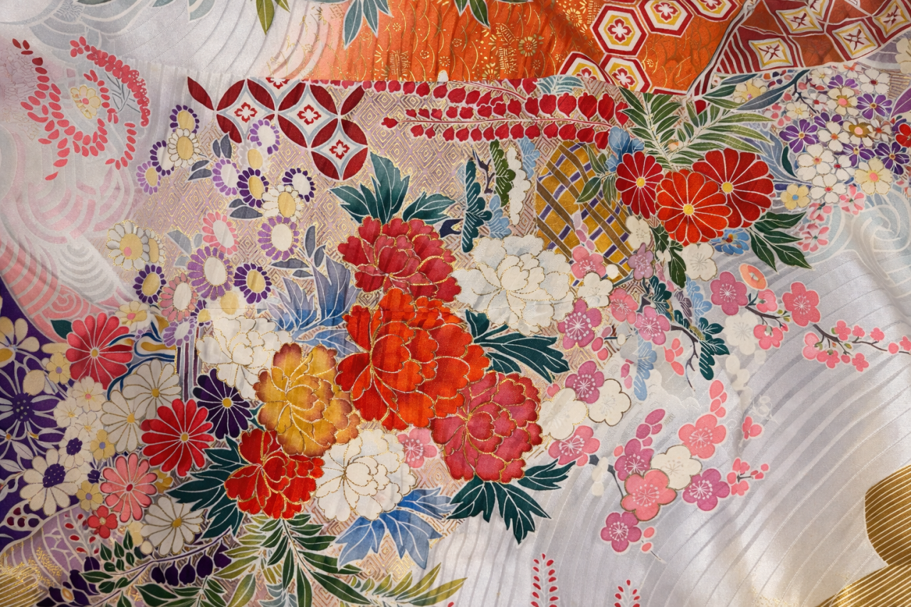 また、化学繊維が肌に合わずに痒みやかぶれをというトラブルを起こす方も稀にいらっしゃいますので、お肌が弱い方には正絹のお着物をお召しいただく方が安心です。