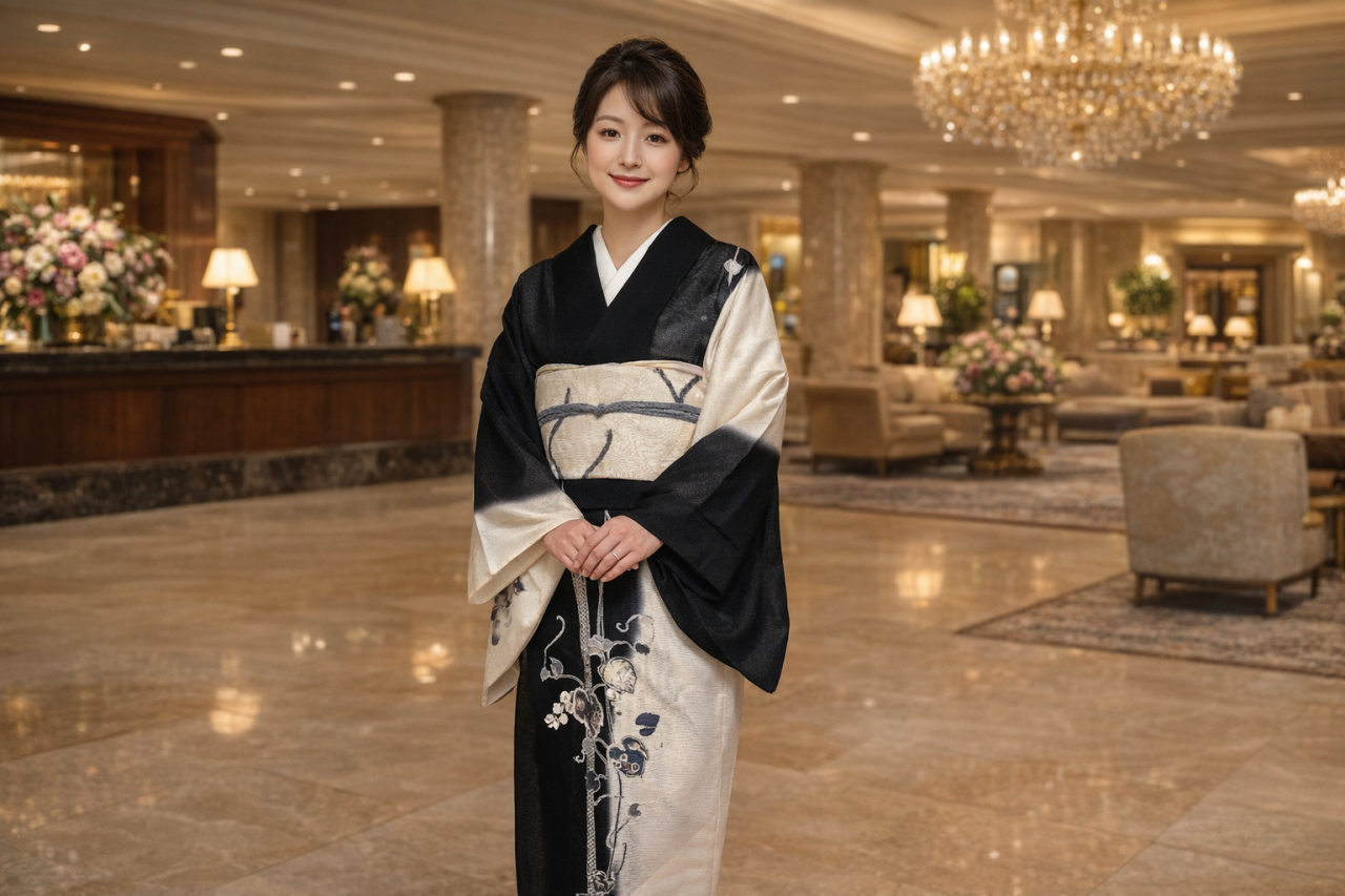 結婚式の主役は新郎新婦ですが、両家のご両親もゲストのおもてなしをする立場として、重要な役割を担います。一般的には、お父様はモーニング、お母様は黒留袖をお召しになりますが、例えばホテルや式場で両家まとめてレンタルの依頼をすると、お父様が全く同じモーニングを手配されてしまい、まるで双子のように見えてしまうといったケースも稀にあります。レンタルした側にはどうしようもないことですが、せめてネクタイやズボンの縞の幅を変えて変化を出すと印象が違ってきます。黒留袖は様々な柄があるため、そういったことはありませんが、身長によって柄の出方が変わりますので、そういった点も考慮した着物選びがおすすめです。